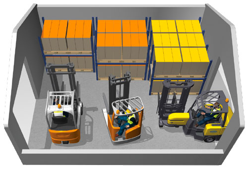 Operando en pasillos tan estrechos como 1.6 metros, Aisle-Master ofrece hasta 15 metros de alcance vertical con capacidad de carga izquierda, derecha y frontal, así como una operación prácticamente silenciosa.